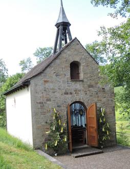 In den Jahren 1952 und 1953 wurde die Kapelle von heimkehrenden Soldaten und ihren Familien aus dem Weiler errichtet. Unterstützt wurde der Bau auch durch Familien aus Hesselbach, da auf der Gedächtnistafel für die Gefallenen und Vermissten des Zweiten Weltkrieges auch deren Opfer mit Bild und Lebensdaten aufgeführt werden. Aus der Chronik geht hervor, dass auch aus umliegenden Ortschaften Spenden für den Kapellenbau gesammelt wurden. Sehr unterstützt hat der damalige Ortspfarrer in Hesselbach Ludwig Hornung dieses Vorhaben. Eine Elchschaufel an der bergseitigen Außenwand erinnert an den Pfarrer. Denn dieser erhielt diese Jagdtrophäe von einem Neffen, der Jäger war. Der Bruder des Pfarrers war Franz Hornung, der als Maurerpolier bei einer Schweinfurter Baufirma beschäftigt war. Zusammen mit ihm haben fleißige Helfer die Kapelle fast ganz in Eigenleistung errichtet. Unterhalb der Kapelle lädt eine Grotte mit einer Muttergottesfigur zum Innehalten und Gebet ein.