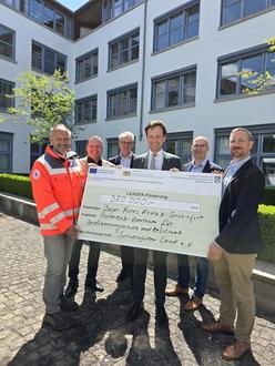 Voraussetzung für die Förderung war auch ein positiver Beschluss des Lenkungsausschusses der Lokalen Aktionsgruppe Schweinfurter Land e. V. (LAG). LAG-Vorsitzender, Landrat Florian Töpper, freut sich gemeinsam mit LEADER-Koordinator Daniel Pascal Klaehre und den Projektverantwortlichen: „Der Katastrophen- und Bevölkerungsschutz haben einen sehr hohen Stellenwert bei uns im Landkreis Schweinfurt. Der Aufbau des Rotkreuz-Zentrums ist insofern ein