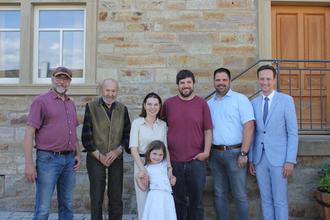 Familie Rudolph / Merthen gemeinsam mit Landrat Florian Töpper und Bürgermeister Johannes Grebner in Ebertshausen.