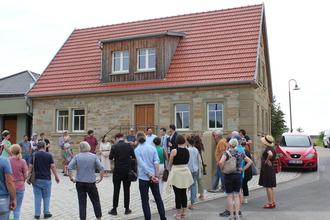 An der zweiten Station wurde die Gruppe bereits von der Familie Rudolph / Merthen in Ebertshausen und Erstem Bürgermeister Johannes Grebner erwartet. Die Familie hat ein seit 40 Jahren leerstehendes altes Sandsteinhaus in ein modernes Wohnhaus verwandelt.