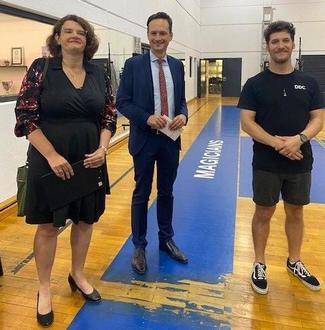 von links: Stellv. Jugendamtsleiterin Daniela Haupt, Landrat Florian Töpper und Kriz Malicki, einer der Gesellschafter der DDC, begrüßten die Gäste zum Sommerfest der Pflegefamilien.
