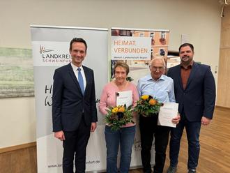 „Ihr Einsatz sticht heraus, in Ihren Gemeinden und Ihrem Umfeld hinterlassen Sie tiefe Spuren des ehrenamtlichen Engagements. Ihre Tatkraft und die Zeit, die Sie zum Wohle Anderer im Ehrenamt aufbringen, ist von unschätzbarem Wert. Sie leben Zusammenhalt vor und stärken unsere Gemeinschaft, auch in schwierigen Zeiten. Das macht uns allen Mut und verleiht einer Gesellschaft Stabilität. Dafür danke ich Ihnen im Namen des Landkreises Schweinfurt von Herzen und zolle Ihnen meinen allerhöchsten Respekt“, sagte Landrat Florian Töpper.