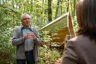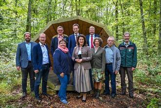 Die zweite Station beim Besuch der Staatsministerin war eine weitere Umweltbildungsstätte: Das Steigerwaldzentrum in Handthal im Markt Oberschwarzach. Landrat Florian Töpper als Vorsitzender des dortigen Trägervereins gab Ministerin Kaniber Einblicke in die Arbeit des Zentrums. Genau acht Jahre nach dessen Eröffnung bezeichnete er die Zusammenarbeit aller mit dem Wald befassten Interessensträger als „wesentlich in Zeiten des Klimawandels“. Den Austausch und das Wissen um den Wald in einer großen Breite und auf hohem fachlichen Niveau zu fördern, dieser Aufgabe komme das Zentrum mit seinem engagierten Team in großartiger Weise nach.