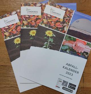Im Bild: Druckfrisch eingetroffen: Die neuen Abfallkalender für das Jahr 2023.