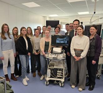 Nach der Begrüßung ging es für die Studentinnen direkt weiter in den Sonografie-Kurs mit Dr. Manfred Klein und Dr. Matthias Wulf. In diesem Jahr neu auf dem Programm: Eine Fachveranstaltung im Krankenhaus für Psychiatrie, Psychotherapie und Psychosomatische Medizin in Werneck mit dem Ärztlichen Direktor, Prof. Dr. Maximilian Gahr.