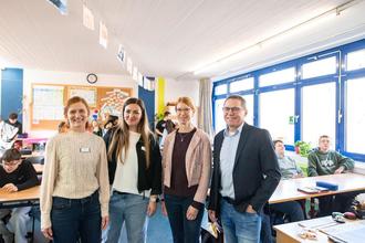 von links: Die Gleichstellungsbeauftragten am Landratsamt Dr. Selma Rienecker und Verena Markert sowie Beratungsrektorin Anneke Krüger und Rektor André Krauß.