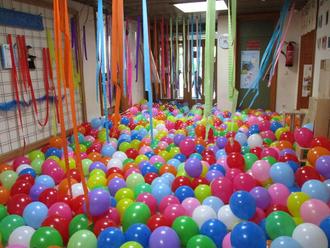 Sie verzauberten die Kinder mit tollen Aktionen. Bereits früh am Morgen erwartete die Kinder ein Meer an Luftballons zur Begrüßung.