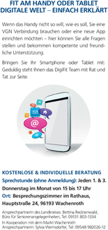 Ein geschultes ehrenamtliches DigiFit-Ratgeber-Team bietet allen, die Interesse an den digitalen Medien haben, eine regelmäßige Anlaufstelle für ihre Online-Anliegen.