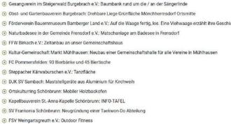 Zwei weitere Projekte werden von mehreren örtlichen Vereinen gemeinsam realisiert: Die Gemeinschaftshalle zur Lagerung von Materialien für alle Vereine in Mühlhausen sowie die Anschaffung von 90 Bierbänken und 45 Biertischen in Pommersfelden. Ein weiteres gefördertes Projekt umfasst die Anschaffung von Maststellgeräten aus Aluminium durch den DJK SV Sambach für die Kirchweih. Die Feuerwehr Birkach e.V. baut für verschiedene Veranstaltungen einen Zeltanbau an das Gemeinschaftshaus.