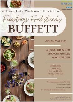 Am 29. Mai 2025 (Christi Himmelfahrt) findet unser Feiertags-Frühstücks-Buffet in der Ebrachtalhalle statt.