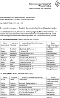 ALE-MFR-A2-7571-126-1-12 Ergebnis der periodischen Neuwahl des Vorstandes Ersuchen um Bekanntgabe im Markt Wachenroth