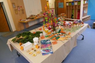 Unterstützt durch den Elternbeirat, unseren Kindergartenkindern, kreativen Eltern, Großeltern, Kolleginnen und ehem. Kolleginnen, Freunden und Firmen konnten wir eine große Auswahl an Selbstgebasteltem, Genähtem, Gestricktem, Gemaltem, Blumengestecken u.v.m. zum Verkauf anbieten.