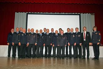 Die Geehrten bei der Dienstversammlung der Feuerwehren aus dem Landkreis Neu-Ulm.