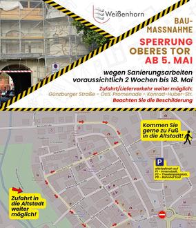 Die Anlieger werden um Verständnis für die zu erwartenden Beeinträchtigungen der durchzuführenden Arbeiten gebeten. Die Zufahrt zur Altstadt ist über die Östliche Promenade und die Konrad-Huber-Straße gewährleistet.