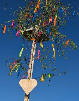 Auch in diesem Jahr hat der Elternbeirat der Grundschule Nord mit viel Hingabe einen schönen Maibaum ausgesucht, ihn liebevoll geschmückt und vor der Schule aufgestellt.
