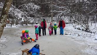 Wir waren ganz aus dem Häuschen und haben den Winter im Waldkinderkindergarten so richtig genossen mit Schneemann bauen, Schneeballschlachten und natürlich das Schlittenfahren im Hügelwald.