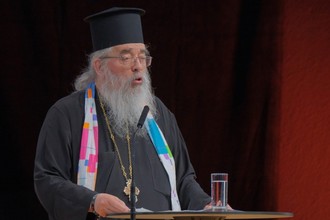 Nach dem Schlusslied und dem Segen hielt Erzpriester Radu Constantin Miron noch ein Grußwort. Er ist griechisch-orthodoxer Geistlicher und Vorsitzender der ACK Deutschland. In seinem Grußwort führte Erzpriester Miron aus, dass der Jüngste Tag nicht im persönlichen Terminkalenderverzeichnet ist, sondern im Terminkalender der Herzen und im gemeinsamen Terminkalender der Ökumene. Gemeinsam Wachsam sein im Harren auf den Herrn ist Aufgabe aller Christen in der Ökumene. Nach Dankesworten des Bezirksapostels an Gott – auch für das schöne Wetter –, an den Bürgermeister und die Einwohnervon Karlsruhe, die Vertreter der Ökumene und die vielen ehrenamtlichen Helfer endete der Festgottesdienst mit dem von allen gesungenen Lied: „Kommet her!“ – womit sich der Kreis schließt vom Motto des Kirchentages hin zum Bibelwort und Schlusslied des Gottesdienstes. Die musikalische Gestaltung lag in den Händen eines vokalen Doppelquartetts, eines Kinderchores und eines Orchesters, die mit ihrem gekonnten Musizieren eine freudige und festliche Stimmung bewirkten.