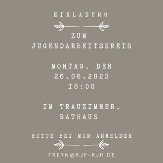 Jugendarbeitskreis am Montag, den 26.06.2023 um 18:00 Uhr