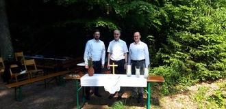 Am Fronleichnams-Feiertag trafen sich Gläubige der einladenden evangelischen Kirchengemeinde Vöhringen mit Mitgliedern aus der Neuapostolischen Kirche bei der Waldhütte am Riedhof zu einem gemeinsamen Gottesdienst im Freien.