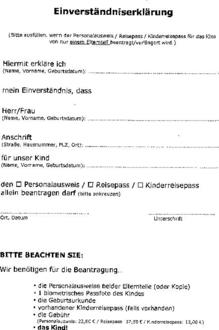 | • | bisheriger Kinderreisepass (falls vorhanden) |