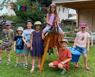 Wir Kinder haben das neue Pferd sofort begeistert in Beschlag genommen und lassen unserer Fantasie freien Lauf: Es wird geritten, geklettert, gepflegt und bespielt – ein echtes Highlight in unserem Gartenalltag.