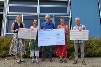 Auch die Schule hatte Sponsoren gesucht. Die Firma Oetinger überreichte einen Scheck in Höhe von 500 € und der Weißenhorner Bürgermeister Herr Dr. Fendt sponserte die Liegestütze der Schulleiterin und der Schulsozialpädagogin. Hier ein herzliches Dankeschön an alle für die Beteiligung und die großzügige Unterstützung unseres Projektes.