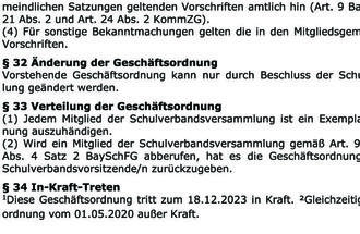 In der Sitzung des Schulverbandes am 18.12.2023 wurde die „Geschäftsordnung des Schulverbandes der Mittelschule Weißenhorn“ geändert.