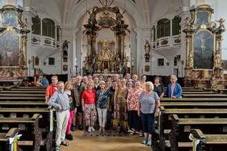 25 Sängerinnen und Sänger des Weißenhorner Kirchenchores mit Partnerinnen und Partnern nach einer langen Coronapause zum 2-tägigen Chorausflug auf den Weg über Straubing (mit interessanter Stadtführung) in den Bayerischen Wald.