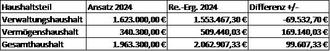 Der Verwaltungshaushalt 2024 sah lt. Plan