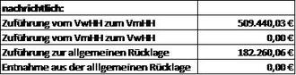 Dieser wurde im Rahmen des Rechnungsausgleichs dem Vermögenshaushalt zugeführt, sodass der Verwaltungshaushalt