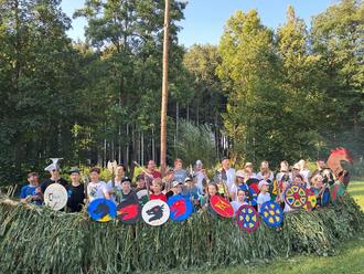 Beim Geländespiel konnten die Kinder ihr Wissen über die Wikinger unter Beweis stellen und erlangten dann gemeinsam den verborgenen Schatz. Die Zeltlagerabende wurden in toller Gemeinschaft mit viel Gesang am Lagerfeuer verbracht.
