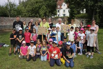 Das Bildungszentrum für Familie, Umwelt und Kultur am Kloster Roggenburg veranstaltete am Mittwoch, 24. Juli 2024 mit den zweiten Klassen der Grundschule Weißenhorn Nord einen ganzen Tag zum Thema „Artenvielfalt am Beispiel Schmetterling“, an dem die Kinder an vier verschiedenen Stationen betreut wurden. Neben einem Einblick in die Lebenswelt von Faltern und Insekten auf dem Klostergelände und dem Basteln von Samenbomben, gab es auch eine Kreativwerkstatt zum Thema Schmetterling. Als Highlight wurde von den Kindern tatkräftig ein Rasenstück auf dem Gelände des Bildungszentrums in eine bunte, blütenreiche Wiese umgewandelt und mit heimischen Blütenpflanzen angesät. Dies leistet einen wichtigen Beitrag zu mehr Artenvielfalt von Wildpflanzen und Insekten auf dem Klostergelände.