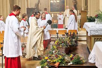 Traditionell stand im Mittelpunkt das Gedenken an die Gottesmutter Maria und die damit verbundene Kräutersegnung, die von Pater Jacob am Ende des Gottesdienstes vorgenommen wurde.