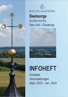 Es gibt wieder ein neues Infoheft vom Bistum Augsburg, Seelsorge - Außenstelle Neu-Ulm/Günzburg. Die Broschüre erhält viele Kontakte, Hilfen und Veranstaltungen zur Ehe- und Familienseelsorge, Männerseelsorge, Frauen- und Alleinerziehendenseelsorge, Katholischen Erwachsenenbildung, Seniorenpastoral, Kontaktstelle Trauerbegleitung und zum Arbeitnehmerzentrum sowie zu weiteren diözesanen Stellen.