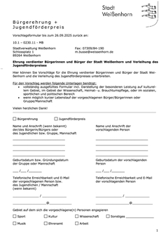 Einmal jährlich ehrt die Stadt Weißenhorn Jugendliche die besondere Leistungen erbracht haben. Auch im kommenden Jahr sollen wieder bis zu drei Jugendliche bzw. Gruppen oder Mannschaften den Jugendförderpreis erhalten.