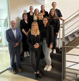 1.Reihe von links: Bürgermeister Dr. Wolfgang Fendt, Geschäftsleiterin Melanie Müller, Personal- & Ausbildungsleiterin Tatjana Stumpp 2.Reihe von links: Sandra Nowak (Weiterbildung BL I), Maja Link (Auszubildende Veranstaltungskauffrau), Eva Schenk (Auszubildende Verwaltungsfachangestellte) 3.Reihe von links: Anna-Maria Höß (Weiterbildung BL I), Teresa Konrad (Weiterbildung BL I), Maja Busse (Absolventin Ausbildung Verwaltungsfachangestellte), Sophie Grub (Absolventin Weiterbildung BL II)