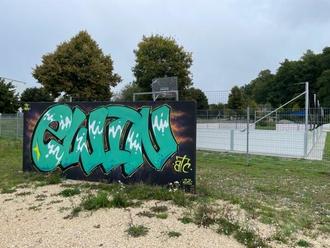 Abbildung 1: Graffiti-Wall im Hintergrund das Basketballfeld