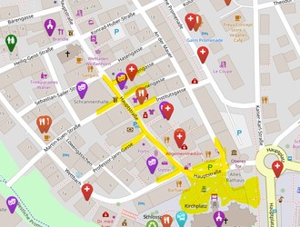 Aus diesem Anlass ist die Hauptstraße vom Oberen Tor bis zur Einmündung Heilig-Geist-/Konrad-Huber-Straße für den Verkehr gesperrt (siehe gelb markierten Bereich auf der Karte).