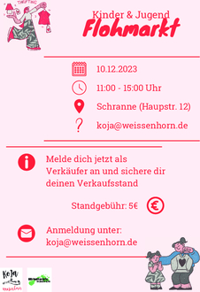 Der Kinder- und Jugendflohmarkt lädt am 10.12.2023 von 11-15 Uhr ein, um einzigartige Weihnachtsgeschenke zu entdecken. Erstmalig findet am 02. Adventssonntag in der Schranne ein Kinder- und Jugendflohmarkt statt. Dort kannst du für Kinder und Jugendliche, gebrauchte Spielsachen, Bücher oder Kleidung verkaufen oder kaufen. Freue Dich neue Dinge zu entdecken und das ein oder andere Schnäppchen zu ergattern.