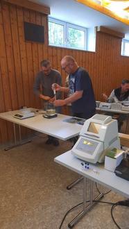 Alle Anwesenden bekamen dazu aus dem gleichen Gefäß eine Wasserprobe und die Analysen konnten beginnen. Fast alle Teilnehmer kamen auf annähernd das gleiche Ergebnis nämlich weit unter dem erlaubten Wert - 10mg pro/l darf es sein, 0,5mg pro/l waren es.
