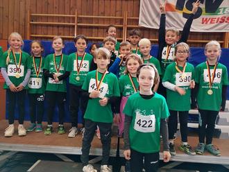 106 Teilnehmer der Grundschule Weißenhorn-Süd liefen nach 1,4 km am Sonntagnachmittag bei den Schülerläufen des 31. Weißenhorner Altstadtlaufes erfolgreich ins Ziel und freuten sich alle über eine Medaille.