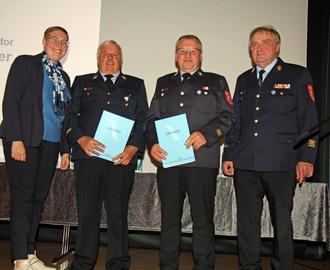 Im Rahmen der Dienstversammlung der Kommandanten des Landkreises Neu-Ulm wurde Wilhelm Schneider für seine herausragenden Leistungen im Feuerwehrwesen geehrt. Landrätin Eva Treu und Kreisbrandinspektor Benedikt Kramer überreichten ihm die Ernennung zum Ehren-Kreisbrandinspektor.