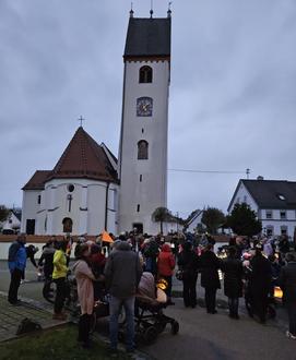 Der Kindergarten Burgstrolche feierte am 09.11.23 das Sankt-Martins-Fest vor der Kirche mit einem Laternenumzug und einem kleinen Umtrunk.