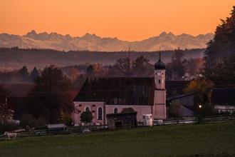 Der Himmel über den Bergen strahlte noch im Abendrot in Emershofen.