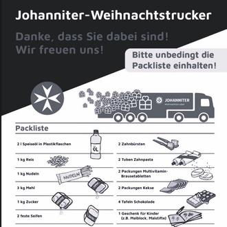 Seit 1993 packen Tausende Menschen in der Vorweihnachtszeit Hilfspakete für den Johanniter-Weihnachtstrucker, um notleidende Menschen in Südosteuropa zu unterstützen. Damit setzen sie Jahr für Jahr ein Zeichen der Solidarität, Nächstenliebe und Hoffnung. Die Pakete werden an wirtschaftlich schwachen Familien, Schul- und Kindergartenkinder, Armenküchen, Senioren- und Kinderheime überreicht.