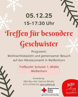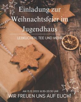 „Auch in der Weihnachtszeit erwarten euch ein paar tolle Aktionen von uns - für euch! Zum Beispiel gibt es wieder das Compassion im Advent Projekt, bei welchem wir die kath. Jugendstelle jedes Jahr unterstützen. Dazu laden wir wieder zwischen 16 und 18 Uhr Kinder ab 6 Jahren ins Jugendhaus ein, um uns beim Basteln zu unterstützen“.