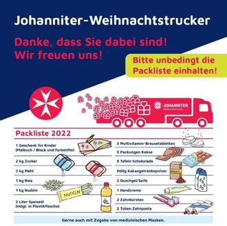 Wenn ihr uns bei der Aktion unterstützen wollt, packt alles auf der Packliste in einen stabilen Karton und bringt diesen am Samstag, den 10.12.2022 zu einer unserer Sammelstellen. Weitere Information, wie auch die Packliste ist auf der Homepage: www.weihnachtstrucker.de zu finden.