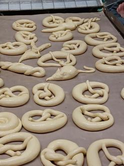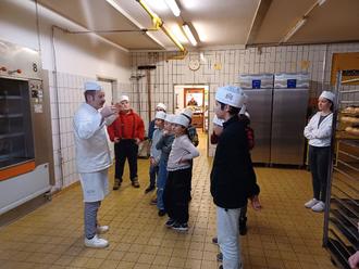 Die AG „Ernährung“ des Gebundenen Ganztags der Mittelschule hat zum Thema „Vom Korn zum Brot“ einen Ausflug in das Stammhaus der Bäckerei Reißler unternommen. Herzlich begrüßt und mit Backmützen ausgestattet durch Herrn Hans Reißler begann unsere Führung durch die Konditorei bis in die imposante Backhalle. Dort erklärte uns der Bäckermeister, Herr Dreiseitel, die verschiedenen Maschinen. Ein absolutes Highlight war dann, dass wir alle selber Brezeln formen und backen durften. Zur großer Freude aller Schülerinnen und Schüler durften wir das fertige Backgut dann mit in die Schule nehmen. Dort haben sich dann am nächsten Tag noch die Kinder und Lehrer über die Köstlichkeiten gefreut.