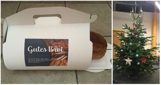 So wurden die uns von der Firma Ritter Verpackungen geschenkten Gebäckboxen mit leckerem Bio-Brot gefüllt und verkauft. Die Idee dazu kam den Elternbeiräten zusammen mit dem Müller der Engelhart-Mühle. Das Mehl dafür bekamen wir von der Engelhart-Mühle gespendet, der Teig wurde von Familie Vidal in Pfaffenhofen zubereitet und im Holzofen gebacken.