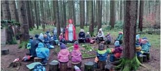 Am 6. Dezember warteten die 24 aufgeregten Waldwichtel aus dem Waldkindergarten St. Franziskus gespannt auf den Nikolaus. Als er schließlich im Wald eintraf, sprangen die Kinder Ihm voller Freude entgegen und nahmen Ihn herzlich in Empfang. Angekommen an unserem Adventsplatz begrüßten wir Sankt Nikolaus mit Liedern und Gedichten. Dann las er aus dem goldenen Buch und teilte nun seine Gaben aus.